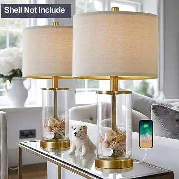 BOBOMOMO 20.2" Bronzer Table Lamp Set of 2 for Living Room Modern Lamp for Living Room Glass Nightstand Lamp with 1 USB Charging Ports, Nautical Lamp(Shell Not Included)