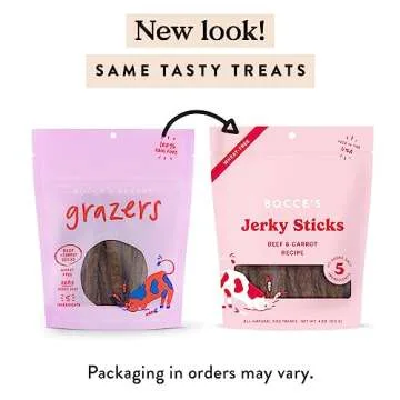Bocce's Bakery Jerky Stick Dog Treats, Wheat-Free, Made with Limited-Ingredients, Baked in The USA with No Added Salt or Sugar, All-Naural & High-Protein, Beef & Carrot Recipe, 4 oz