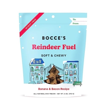 Show moreCelebrate the festive spirit and delight your furry friend with Bocce's Bakery Reindeer Fuel Soft & Chewy Dog Treats. These all-natural, wheat-free dog treats are more than just a tasty snack; they're a celebration of love and joy tailored for your beloved pup. Each treat is crafted with a perfect blend of rich flavors, including mouthwatering bacon and sweet banana, making them a favorite among dogs of all sizes! Your dog will eagerly anticipate each scrumptious morsel, and they are sure to bring wagging tails and happy barks every time the bag opens!
