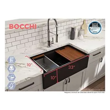 BOCCHI Contempo Workstation Apron Front Step Rim Fireclay 33 in. Single Bowl Kitchen Sink with Accessories in Matte Black