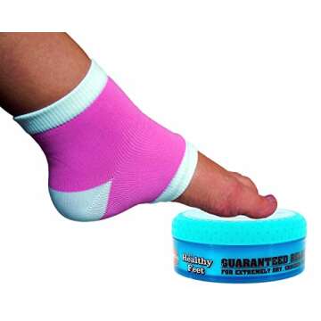 Show more Transform your foot care routine with this innovative Cracked Heels Treatment Set, designed to bring relief and rejuvenation to your dry, hard, and cracked heels. It includes O'Keeffe's Healthy Feet Cream, a remarkable foot cream that's odorless, non-greasy, and hypoallergenic, making it suitable for all skin types. Accompanying the cream are two pairs of stylish pink open toe gel socks, crafted from a combination of nylon and spandex. These gel socks not only keep the cream in contact with your skin but also promote deeper moisturization with every wear.