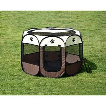 Show moreIntroducing the BODISEINT Portable Pet Playpen - the ultimate solution for pet owners who are on the go! Designed with safety and comfort in mind, this innovative pet playpen features eight sturdy side panels made from high-grade, scratch-resistant materials to ensure your furry friend remains secure and comfortable. Whether you have a puppy, kitten, or other small pets like rabbits or guinea pigs, this playpen provides a spacious and well-ventilated area for them to play, explore, or relax. Its mesh roof allows for optimal airflow, while the transparent sides keep your pet connected with their environment, so they don’t feel isolated.