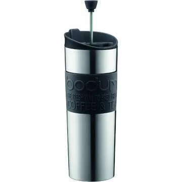 Show moreThe Stainless Steel French Press Travel Mug from Bodum is the ultimate solution for coffee lovers on the go. This innovative travel coffee maker allows you to brew your coffee or tea directly in the mug and drink from the same container when it's ready. Made with a vacuum-sealed, double-wall construction, this stainless steel travel mug ensures your beverages stay hot or cold for several hours, making it perfect for your daily commutes, road trips, or simply enjoying a fresh cup of coffee at the office.