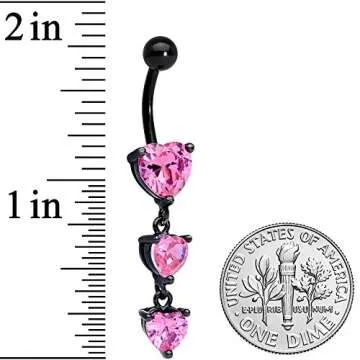 This ring isn’t just a piece of jewelry; it's adorned with a charming triple pink accent heart dangle charm, perfect for adding a touch of romance. The black Valentine-themed design contrasts beautifully with the pink accents, creating an eye-catching look that speaks to the heart. Ideal as a gift for yourself or a loved one, especially on Valentine's Day, this belly button ring serves as a beautiful symbol of love and affection.