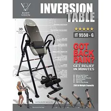 Body Vision IT9550 Deluxe Inversion Table with Adjustable Head Pillow & Lumbar Support Pad, Gray - Heavy Duty up to 250 lbs