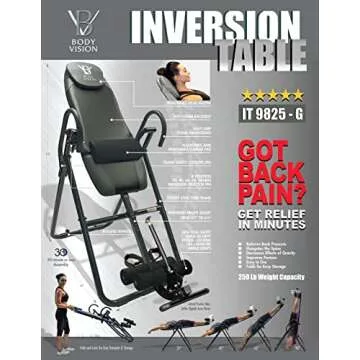 Body Vision IT9825 Premium Inversion Table - Heavy Duty with Adjustable Head Pillow & Lumbar Support