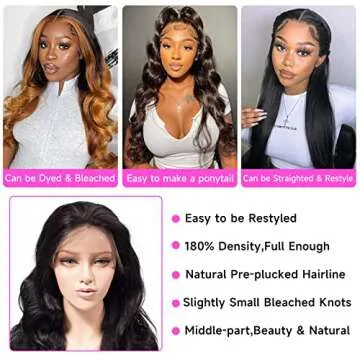 Body Wave Lace Front Wigs Human Hair - Hd Lace Front Wigs Human Hair, 13x4 Lace Front Wigs Human Hair Pre for Women Plucked Brazilian Virgin Transparent Frontal Wigs With Baby Hair 180% Density