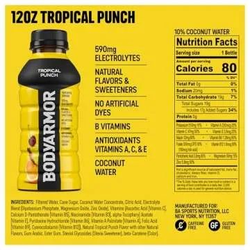 Show moreElevate your hydration game with the BODYARMOR Sports Drink in the delightful Tropical Punch flavor. Crafted specifically for athletes and active individuals, this refreshing beverage is formulated with natural flavors and sweeteners, ensuring a guilt-free treat after your intense workouts. With a generous dose of potassium-packed electrolytes and 10% coconut water, BODYARMOR is designed to replenish what your body craves while delighting your taste buds with every sip. The blend of tropical flavors, including a harmonious mix of pineapple, coconut, and citrus, transports you to a sunny beach paradise with every refreshing drink. This pack of 8, 12 fl oz bottles offers the perfect on-the-go hydration solution without settling for artificial ingredients.