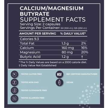 BodyBio Butyrate with Calcium & Magnesium - Supports Healthy Digestion, Gut & Microbiome - Leaky Gut Repair - Control Bloating - Fuel for Healthy Gut - 100 Capsules
