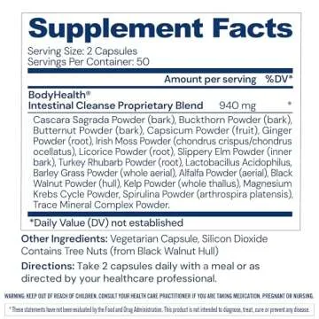 BodyHealth Intestinal Cleanse - Eliminate, Colon Cleanser Detox, Gentle Laxative Pills and Bowel Flush Constipation Relief for Adults, Body Cleanse for Colon Health and Clean Gut (100 Capsules)