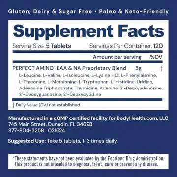 BodyHealth PerfectAmino, Essential Amino Acid with BCAAs + Lysine, Phenylalanine, Threonine, Methionine, Tryptophan, Supplement for Muscle Mass Production, Recovery & Strength (600 ct)