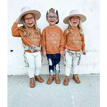 Show more Introducing the perfect blend of style and comfort for your little ones, this Toddler Halloween Sweatshirt is crafted from a high-quality cotton blend, making it irresistibly soft and cozy for their delicate skin. Designed for babies aged 6 months to 5 years, this oversized pumpkin-themed outfit is guaranteed to turn heads at any gathering. With its fun 'pumpkin' print and cute brown color, your child will be the cutest pumpkin in the patch! Owners have praised its comfortable fit and charming design, making it a must-have for Halloween celebrations.