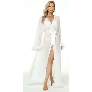 Bogumil Women's Bride Robe with Elegant Feather Trim (M, White)