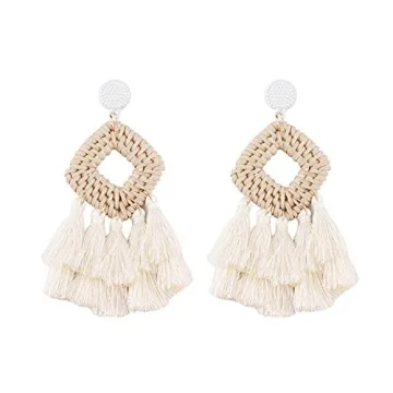 Introducing the Bohemia Tassel Earrings – a stunning addition to your jewelry collection that effortlessly combines elegance with artistic flair. These handmade dangle earrings feature an exquisite bamboo weaving technique, creating a beautiful ethnic fringe design that is both lightweight and comfortable. Each pair showcases a geometric square sector that will catch the light and your admirer's attention, making them a versatile accessory for any outfit. Whether you're dressing up for...