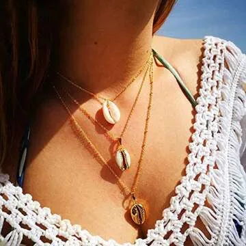 Bohemian Sea Shell Pendant Chokers Necklaces Multi Layer, White, Size No Size