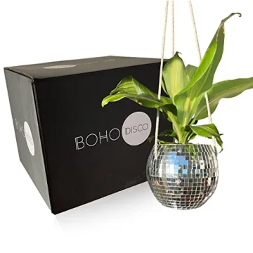 Boho Disco Hanging Disco Ball Planter for Stylish Home Decor, Includes Macrame Hanger