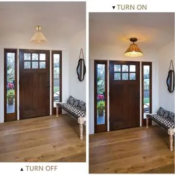 When compared to other lighting fixtures on the market, the Boho Gold Semi Flush Mount Ceiling Light stands out for its meticulous craftsmanship and versatile design. Unlike some mass-produced options, this fixture offers a genuine hand-crafted quality with its rattan shade that is not only visually attractive but also functional. Many competitors often overlook energy efficiency, while our light allows you to choose LED bulbs, helping you reduce energy costs while maintaining a warm and inviting atmosphere.