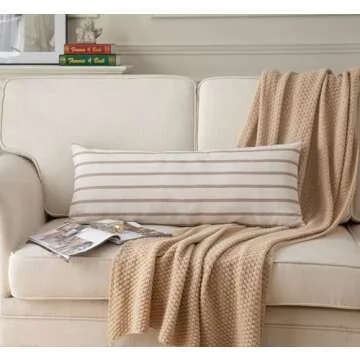 Elegant 14X36 Boho Lumbar Pillow Cover - Durable Beige Stripes for Home