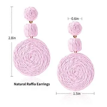 Perfect for daily wear, these earrings express fun and style, ideal for both casual day outings and elegant evening affairs. The delightful variety of colors available means you can easily match them to your personal style or occasion. As a perfect gift choice, these Weave Straw Double Disc Drop Earrings hold the energy of raffia, making them a thoughtful present for birthdays, anniversaries, or as a loving treat for a friend, sister, or mother.