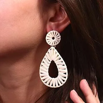 earrings are wrapped in ivory raffia straw, adding
