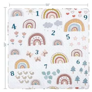 Boho Rainbow 50x50 Play Mat for Playpen, Washable Portable Baby Floor Playmat, Non Slip Foldabe Infant Crawling Mats, Tummy Time Mat Pad for Toddlers Baby Play Pen Mats for Home Or Travel