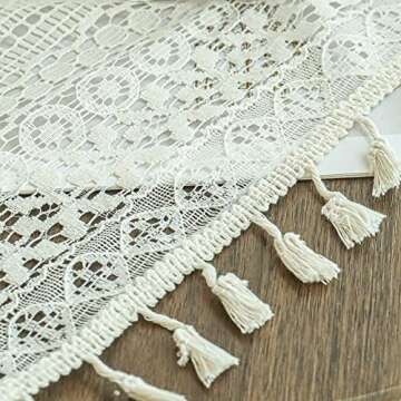 Boho Vintage Sheer Curtains for Bedroom Living Room , 2 Panels 84 inch Long Rustic Farmhouse Crochet Light Filtering Bohemian Cotton Linen Lace Window Curtains With Tassel (58”W x 84”L ,Beige)