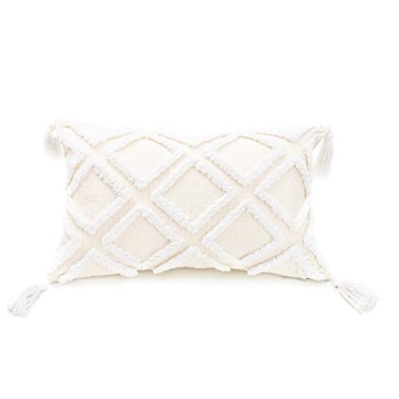 Show more Introducing the PLWORLD Tufted Bohemian Pillow Covers—a beautiful blend of style and comfort that can elevate any living space. Made from high-grade durable solid chenille, these pillow covers boast a stunning cream white color that adds a touch of elegance to your home decor. The fabric is not only visually appealing but also plump down and soft to the touch, ensuring you feel cozy and warm. These covers serve not just a functional purpose but also a decorative one, making them a perfect choice for any room.