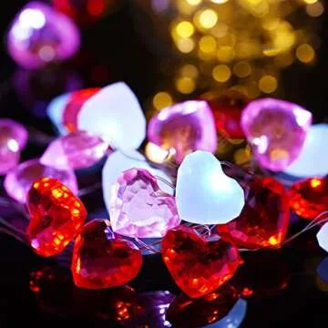 BOHON Red White Pink Heart String Lights Battery Operated, 10 ft 30 LEDs 3D Heart Lights, Twinkle Fairy Lights with Remote for The Home Bedroom Garland Wedding Indoor Party Decor Timer