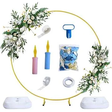 BOJOY Wedding Arch Golden Metal Round Balloon Arch kit Decoration, for Birthday Party Decoration, Wedding Decoration, Graduation Decorations and Baby Shower Photo Background Decoration (7.8ft)