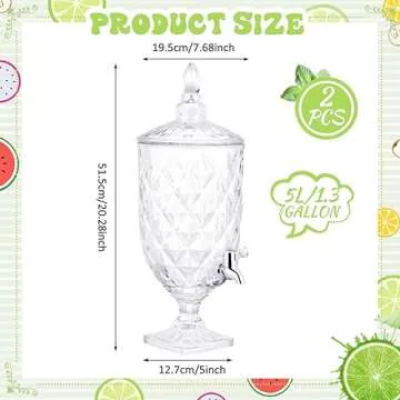 Show moreIntroducing the Bokon 1.3 Gallon Drink Dispenser Set, a perfect blend of functionality and elegance designed to elevate your beverage service at any event. This exquisite set includes two beautifully crafted glass dispensers with a vintage aesthetic that not only serves drinks but also enhances the atmosphere of your gatherings. Each dispenser features a generous capacity of 1.3 gallons (5 liters), making them ideal for serving large parties, weddings, and other celebrations. The meticulously designed wide mouth allows for easy filling and cleaning, ensuring that your beverage station remains as stunning as your drinks. Made from high-quality, thick, and sturdy glass, these dispensers reassure you of their durability and reliability for years of use. Whether you are hosting an Afternoon Tea or a festive holiday party, these dispensers will surely become the centerpiece of your table.