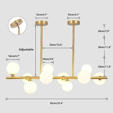 Measuring 37.4 inches in length with strategically sized globes (four large at 4.7 inches, six small at 3.9 inches), this chandelier is an eye-catching addition to your home. It utilizes a G9 light source with a voltage range of 110-240V. For those who love ambiance, any dimmable light bulbs used with a dimmer switch will make this chandelier fully adjustable for your lighting needs.