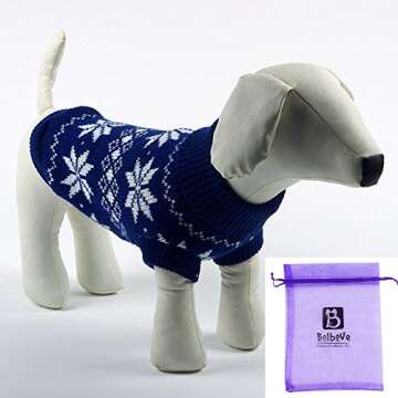 Show moreIntroducing the Bolbove Pet Snowflake Knitted Turtleneck Sweater, the ultimate cold weather outfit for your small dogs and cats. Ideal for those chilly winter days, this stylish knitwear not only keeps your furry friends warm but also ensures they look adorable while doing so. Crafted from high-quality, stretchy material, this cozy sweater features a charming snowflake pattern that adds a festive touch to your pet’s wardrobe.