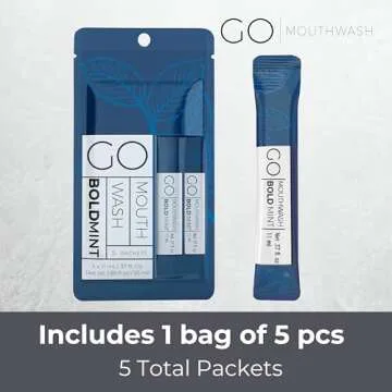 Bold Mint GO Travel Size Mouthwash Packets - Bulk Individual Mini Mouthwash Packets - Perfect Travel Size Toiletries for Guest Bathrooms - Alternative to Breath Strips and Spray, Alcohol and Dye Free