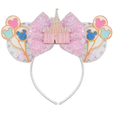 Bolonar Castle Mouse Ears Headband Sequin Pink Mouse Ears Mouse Ears Bow Headbands Christmas Headbands for Adults