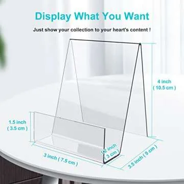 Show moreIntroducing the Boloyo Acrylic Book Stand with Ledge - a beautifully crafted display solution designed for versatility and elegance. This set of four 4-inch clear acrylic display easels elevates your items while ensuring they are showcased in the best light. Perfectly engineered with a reasonable tilt angle, the Boloyo stands not only highlight your collectibles but also blend seamlessly into any environment, whether at home, in the office, or at a school library. The stability of its large flat base guarantees your displayed items remain safe and secure, while the ease of movement allows you to reposition them without hassle.