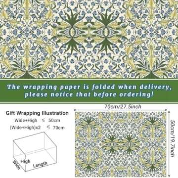 Bolsome William Morris Wrapping Paper - Vintage Floral Gift Wrap for All Occasions, 12 Sheets, 19.7 x 27.6"