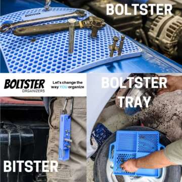 Boltster Tray | Mechanic Tools | Silicone Bolt, Nut, and Bit Organizer | Flexible Rubber with Handle