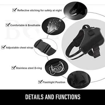 Bolux Dog Harness, No-Pull Reflective Dog Vest, Breathable Adjustable Pet Harness with Handle for Outdoor Walking - No More Pulling, Tugging or Choking (Black, L)
