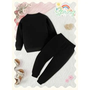 BOMDEALS Cute Toddler Girls Sweatsuit - St.Patrick's Heart Print Child Clothes, Long Sweatshirt and Sweatpants Fall Outfit(Black,120,1203b)