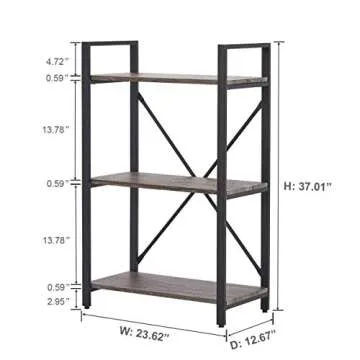 Show moreIntroducing the BON AUGURE 3 Tier Bookshelf, a masterpiece of style and practicality that enhances any space you choose. Whether in your living room, bedroom, or office, this small rustic bookshelf features a stunning dark gray oak finish and industrial design that adds character while helping you organize in style. Its sleek, open-shelving design allows for effortless display of books, decorative items, and even your tech gear, ensuring your essentials are always within reach. Users have lauded its effectiveness in managing clutter and showcasing their treasured belongings, making it a must-have for anyone looking to marry beauty with functionality.