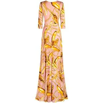 Bon Rosy Women's Super Stretchy Maxi Party Dress Spring Floral Print Faux Wrap 3/4 Sleeve V-Neck