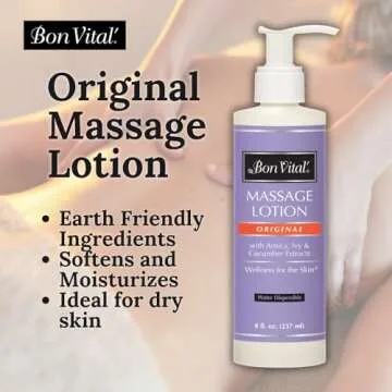 Bon Vital' Original Massage Lotion for a Versatile Massage Foundation to Relax Sore Muscles & Repair Dry Skin, Lightweight, Non-Greasy Formula to Moisturize and Repair Dry Skin, 8 Oz, Label may Vary