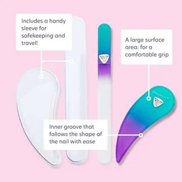 Bona Fide Beauty Ergonomic Nail File Set - 2PC Czech Glass Ergofile Set for Natural Nails and Acrylic Nails (Pastel Green and Violet)