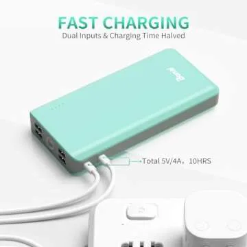 BONAI Portable Charger, 30000mAh Capacity External Battery Pack with Flashlight & 4-USB Outputs & Dual Inputs & 2 8-Pin Cables, Power Bank Fast Charging for iPhone Android Phone iPad etc-Green