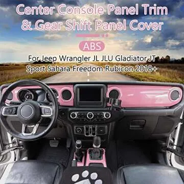 Show moreTransform the interior of your 2022 Jeep Wrangler with the stylish Bonbo Interior Accessories Center Console Panel, expertly designed to enhance the aesthetic and functional appeal of your vehicle. This set includes four premium pieces, crafted specifically for the Jeep Wrangler JL, JLU, and Gladiator JT models produced from 2018 to 2022. Available in a vibrant pink color, this dashboard trim and gear shift panel cover not only adds a pop of personality but is also made with durable materials that are engineered to withstand wear and tear, ensuring long-lasting performance that effortlessly complements your Jeep’s rugged design.