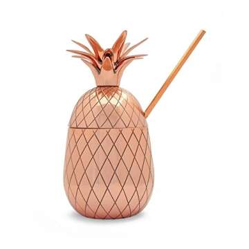 BonBon Copper Pineapple Cup 2-Pack Tumbler With Copper Straw, 17 OZ (Set of 2)