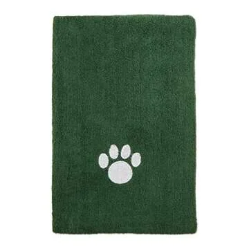 Bone Dry Pet Grooming Towel Collection Absorbent Microfiber X-Large, 41x23.5", Embroidered Hunter Green