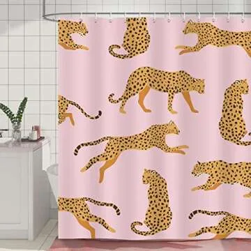 Bonhause Pink Leopard Shower Curtain, Trendy Cheetah Tropical Animal Bathroom Curtain 72x72 Inch Polyester Fabric Waterproof Bath Curtain with 12 Hooks
