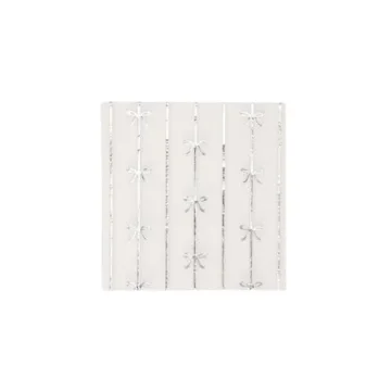 Show more Elevate your party decor with Bonjour Fete Silver Bow Small Paper Napkins, expertly crafted to bring a touch of elegance to any celebration. These premium napkins are perfect for a variety of occasions, including birthday parties, gender reveals, baby showers, and more. Measuring 5" folded, they offer the ideal size for cocktails or small treats, ensuring your table setting looks sophisticated and charming. With a delightful bow design, they are not just functional but also a stunning addition to your party aesthetics.