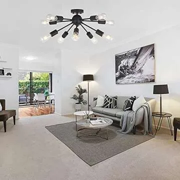 BONLICHT 10-Light Sputnik Chandelier Black Mid Century Modern Ceiling Light Vintage Industrial Starburst Chandelier for Kitchen Living Room Dining Room Hallway Entryway
